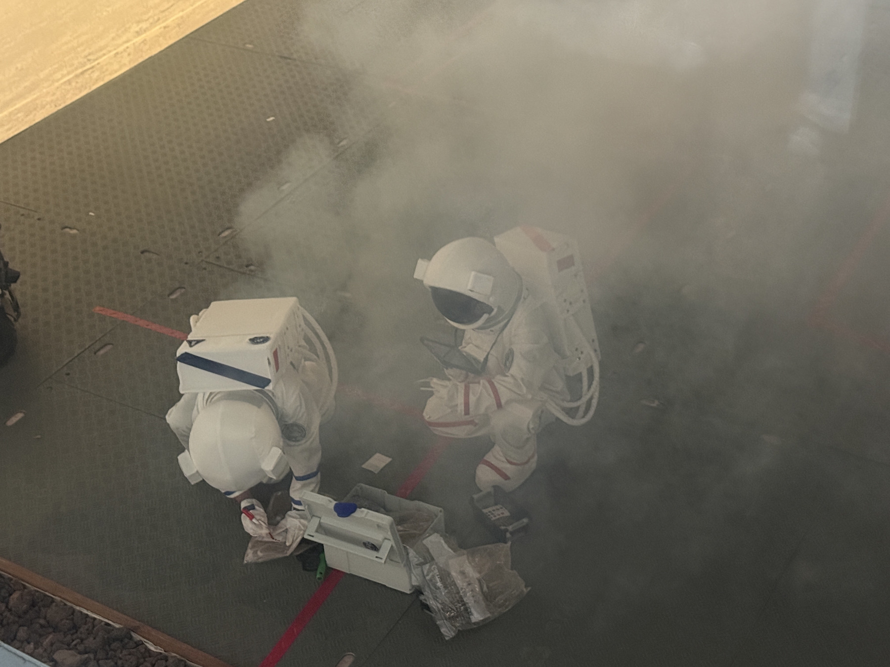 Les volontaires ont ainsi eu des actions a réaliser dans le « vaisseau spatial », un temps de repas en immersion puis la préparation puis la réalisation d’une « sortie extravéhiculaire ».